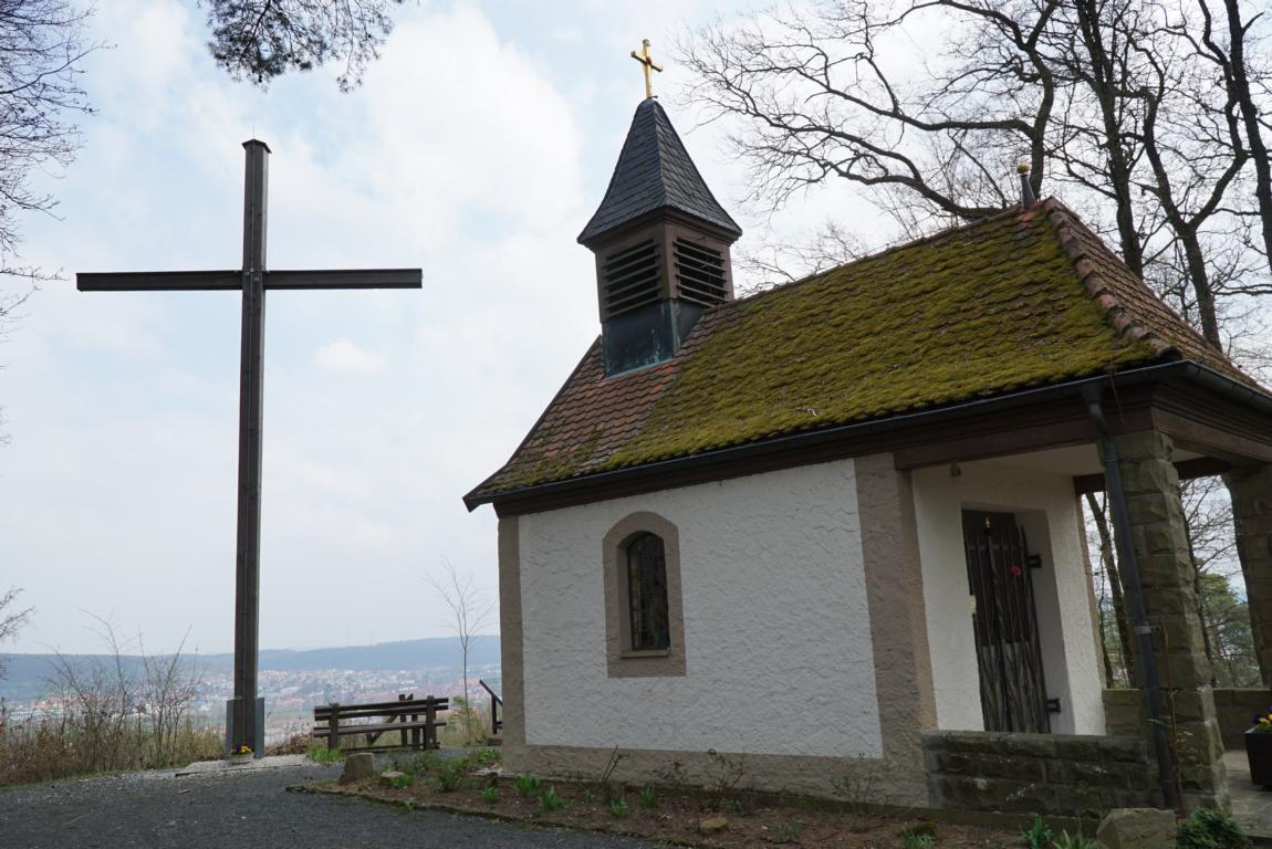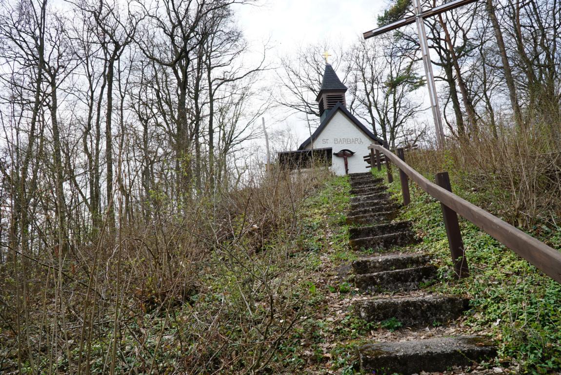 Vom Wanderparkplatz in der Alten Kaserne bei Ebern gelangte ich zur St. Barbara Kapelle. Diese liegt iauf dem Aussichtsberg am Eberner Käppele. Im ehml. Standortübungsplatz gibt es heute ein Naturschutzgebiet und es wurden schöne Wanderwege angelegt.