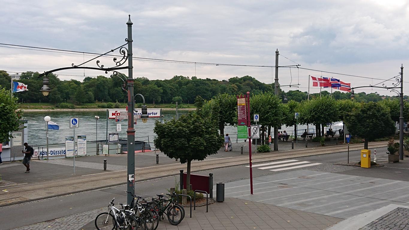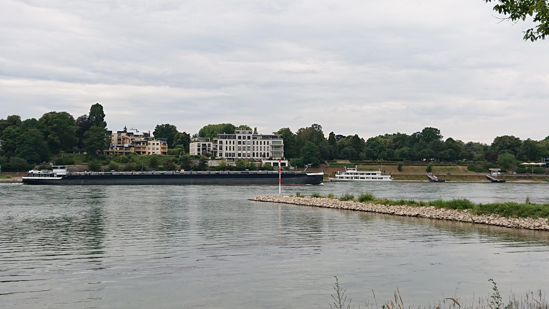 Nach einem Spaziergang durch die Parkanlangen und am Rheinufer entlang, habe ich mich in ein kleines Café gesetzt und habe bei einem Bayerischen Weizen und einem Stück Kuchen dem Schiffsverkehr auf dem Rhein zu geschaut. Alle paar Minuten ist ein Frachter oder ein Ausflugsdampfer mal größer und mal kleiner vorbei getucktert.
