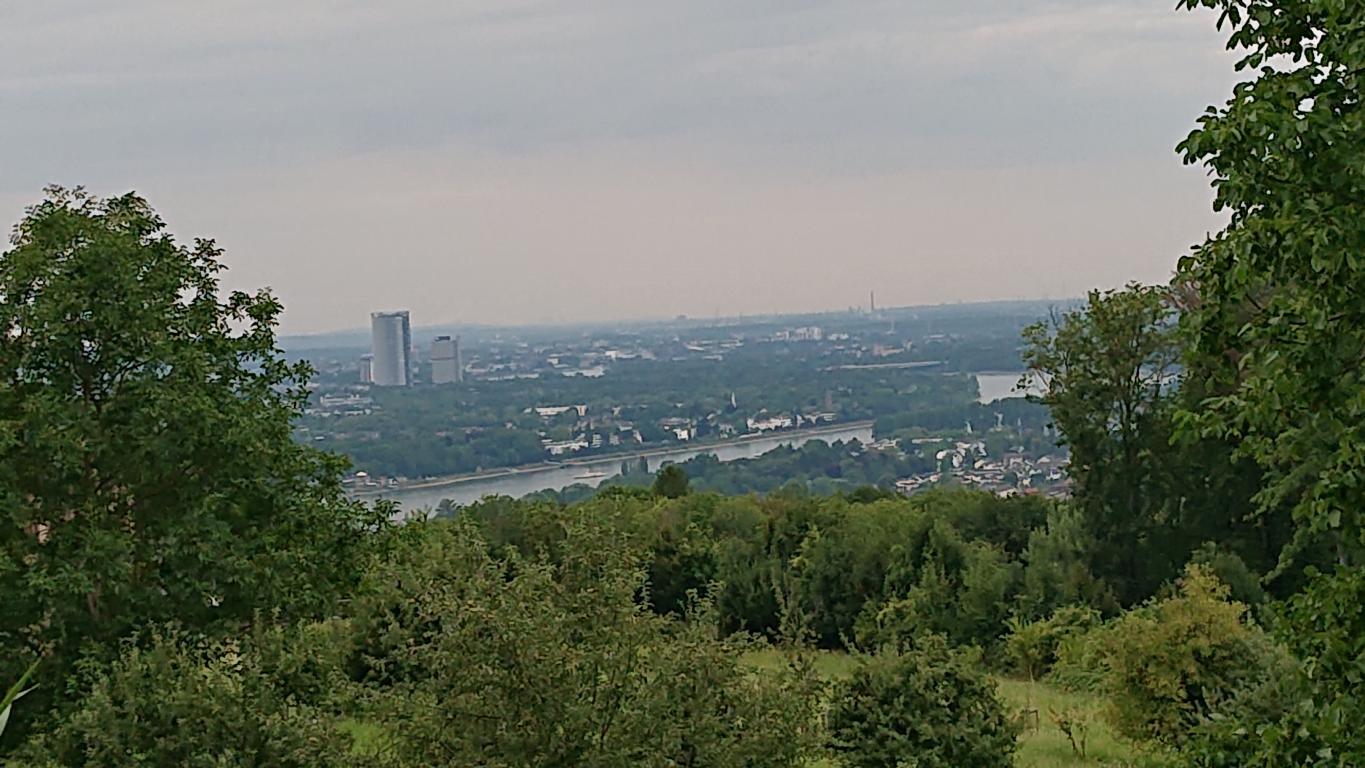 Von hier oben hat man eine wunderbare Aussicht auf das Siebengebirge in das Rheintal und nach Bonn. Bei schönem Wetter sieht man auch die Zugspitze.