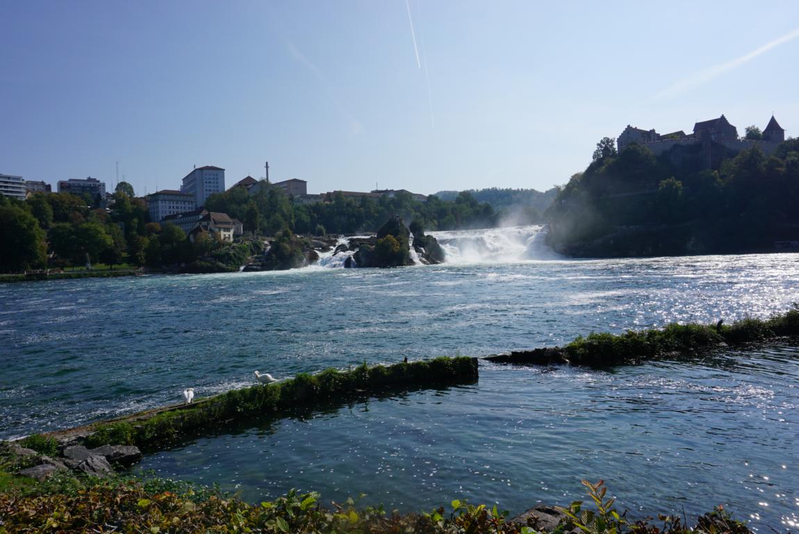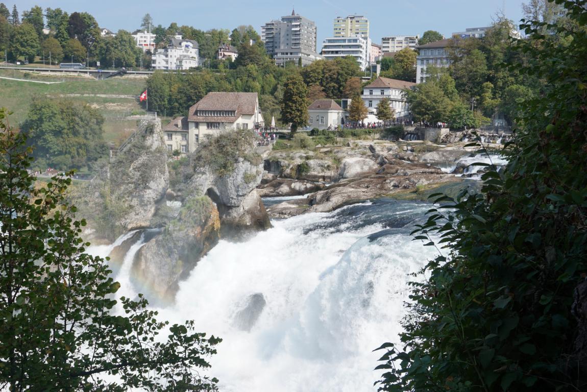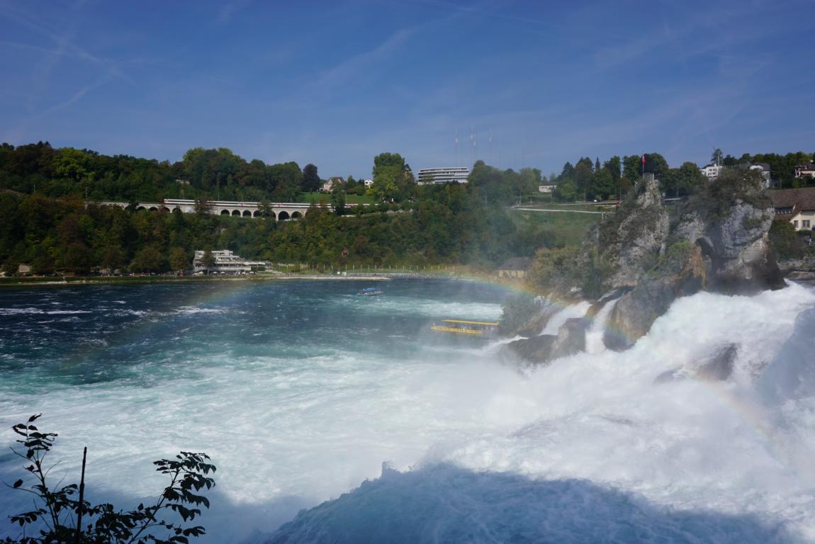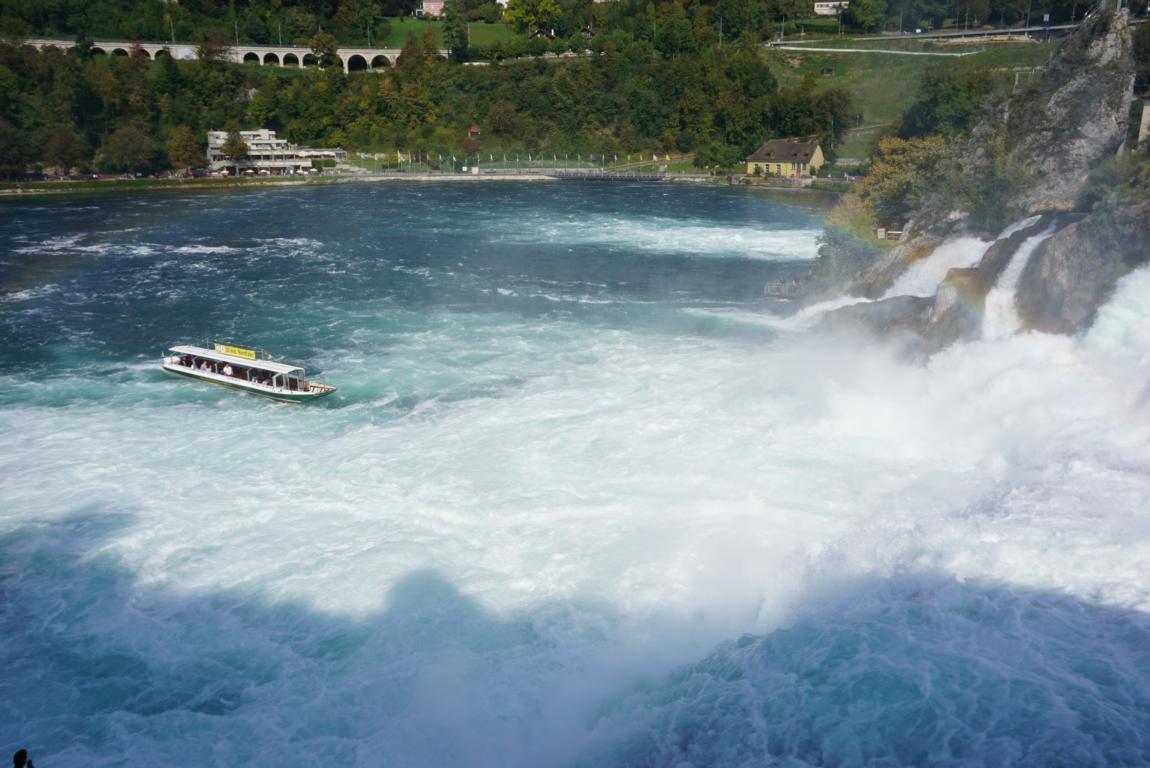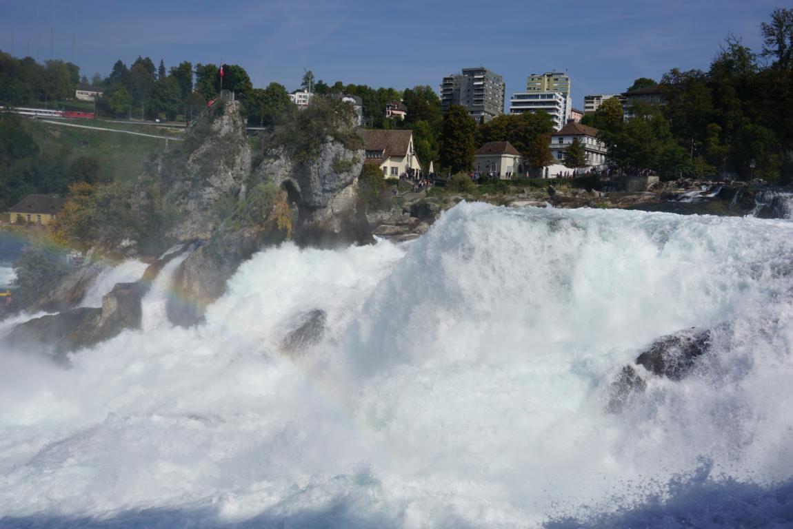 Auf 150 m Breite stürzt der Rhein (vom Bodensee kommend) aus 23m Höhe über die Felsen.