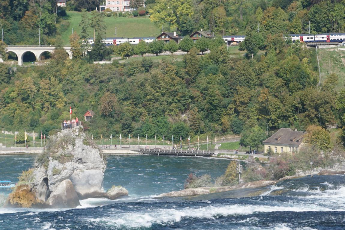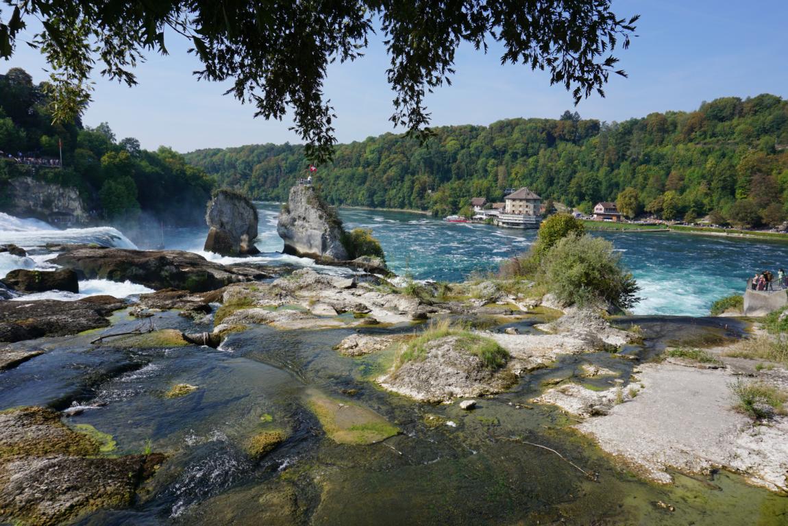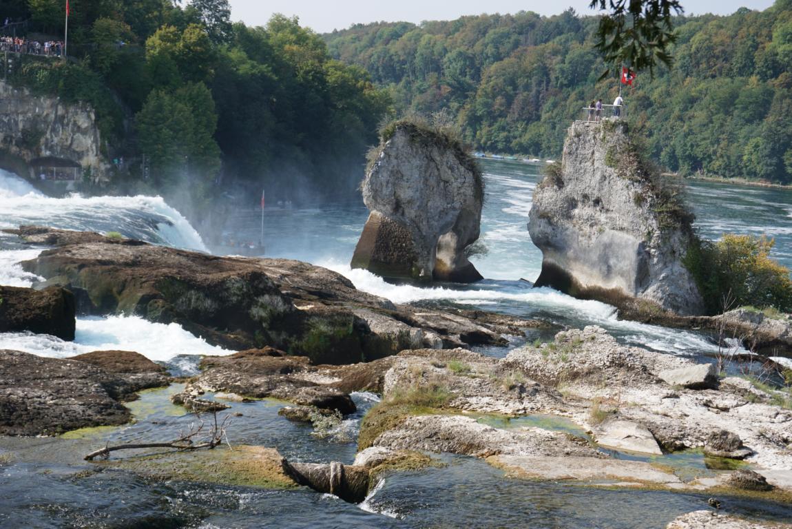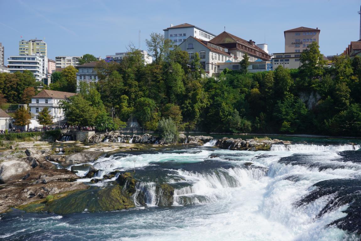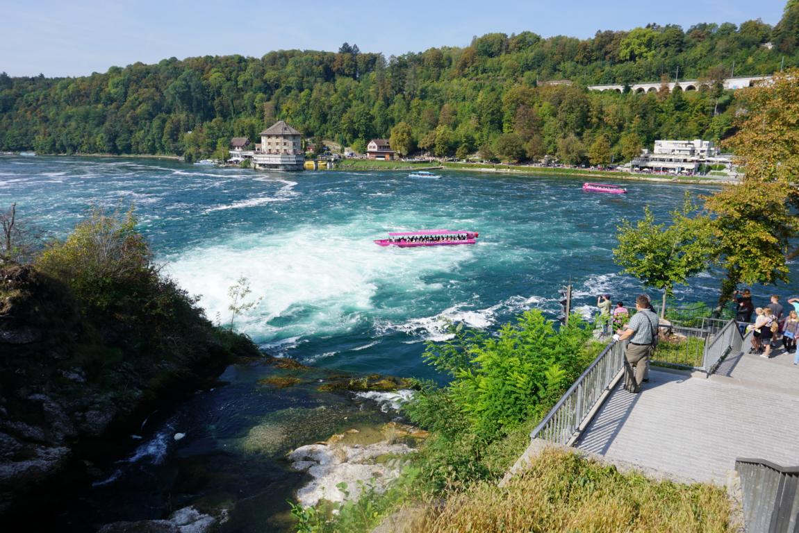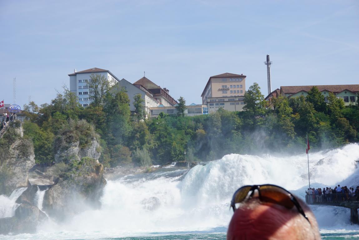 Auf 150 m Breite stürzt der Rhein (vom Bodensee kommend) aus 23m Höhe über die Felsen.