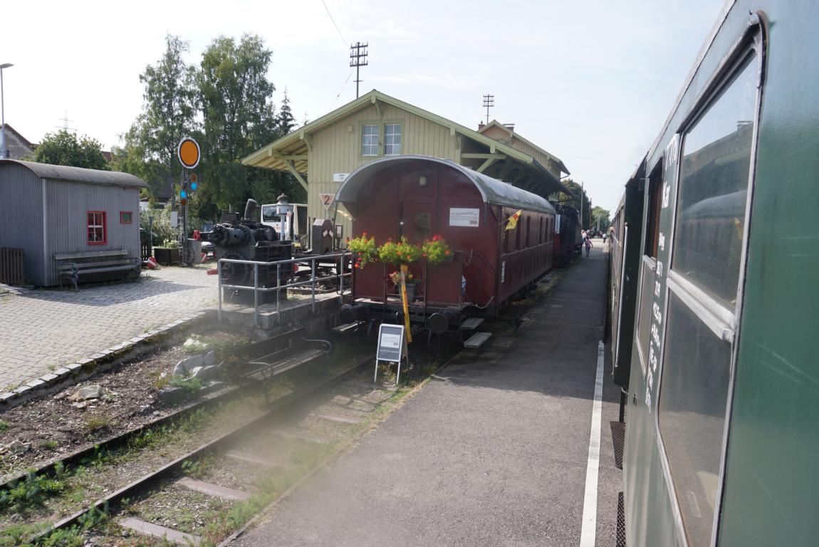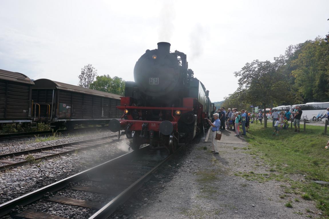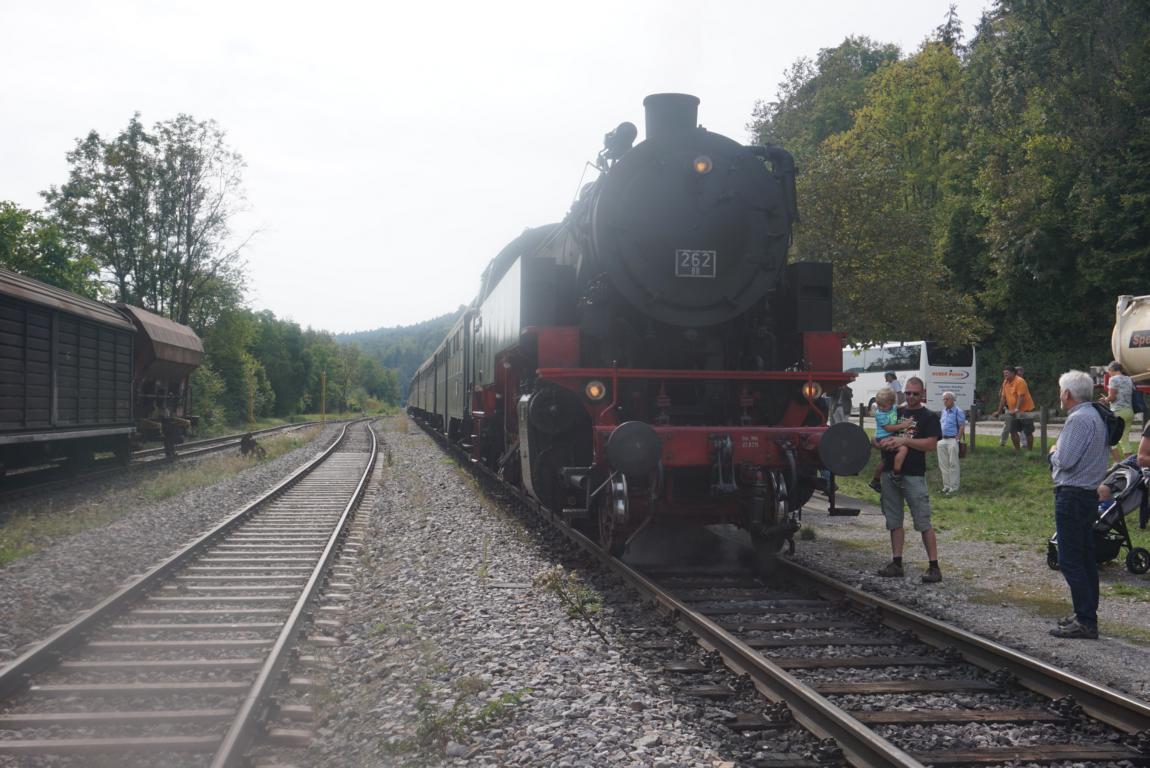 In Weizen wurde die alte Dampflock umgestellt. Die meisten Gäste stiegen in Weizen aus und wurden von Ihren Bussen in Empfang genommen. Unterwegs stiegen Wanderer hinzu die durch die Wutach oder auf dem Sauschwänzle Wanderweg unterwegs waren.