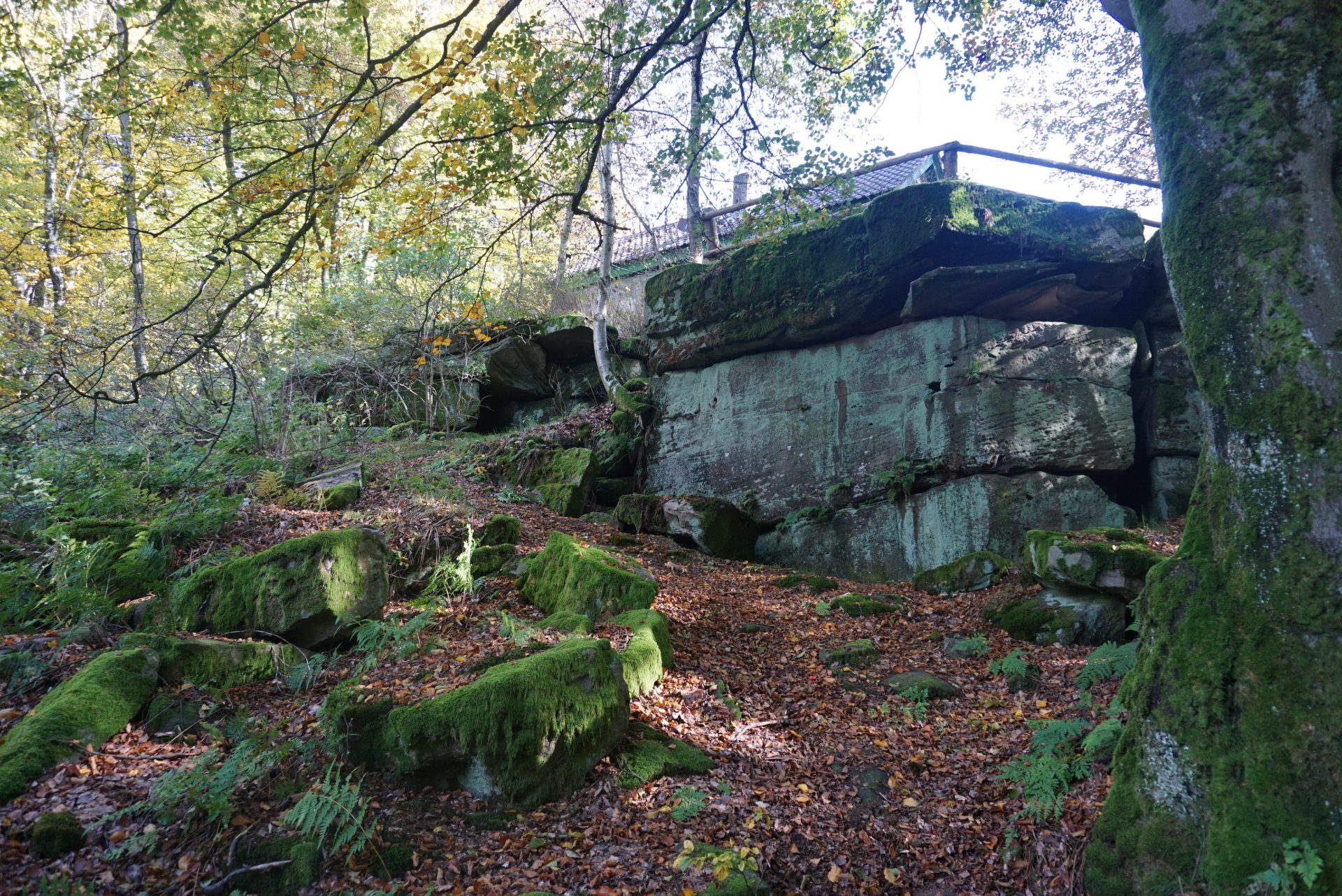 Vom Rathaus in Motten führt uns dieser Wanderweg auf dem Rhönklub Wanderweg steil hinauf durch Wald zur Hohen Kammer. dort befindet sich das Jagdhaus Hohe Kammer.