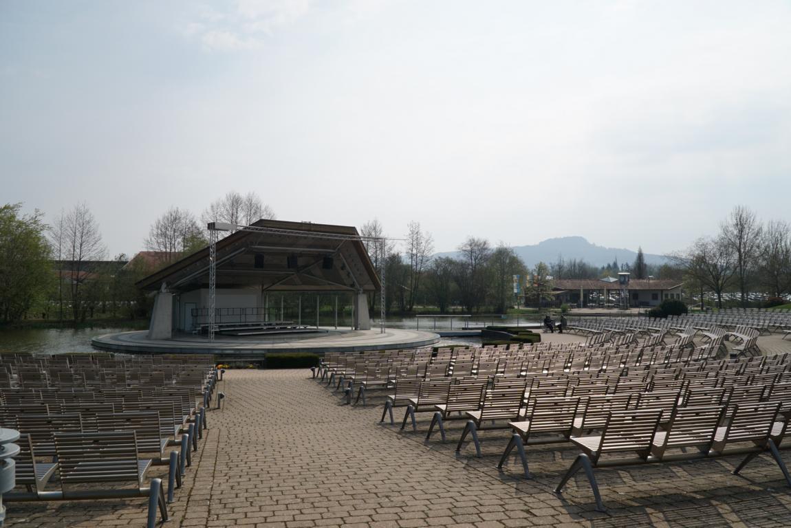 Ein breiter Weg führte mich durch den 1999 eröffneten Kurpark zum Aussichtspavilion und weiter zu den beiden Gradierwerken und zu der Seebühne.