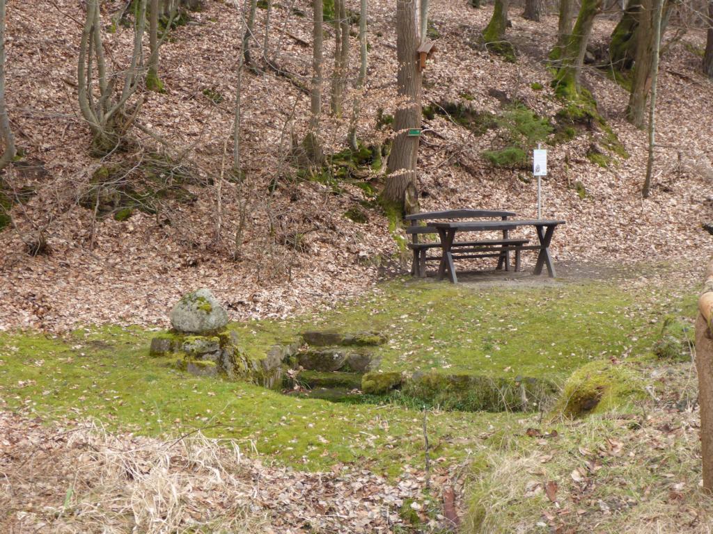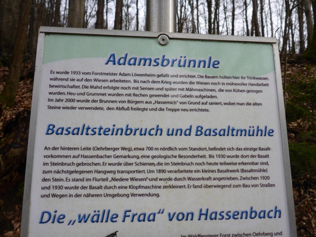 Diese Wanderung führt uns zum Adamsbrünnle bei Hassenbach und über Waldwege zum Mittelpunkt des Landkreises Bad Kissingen.