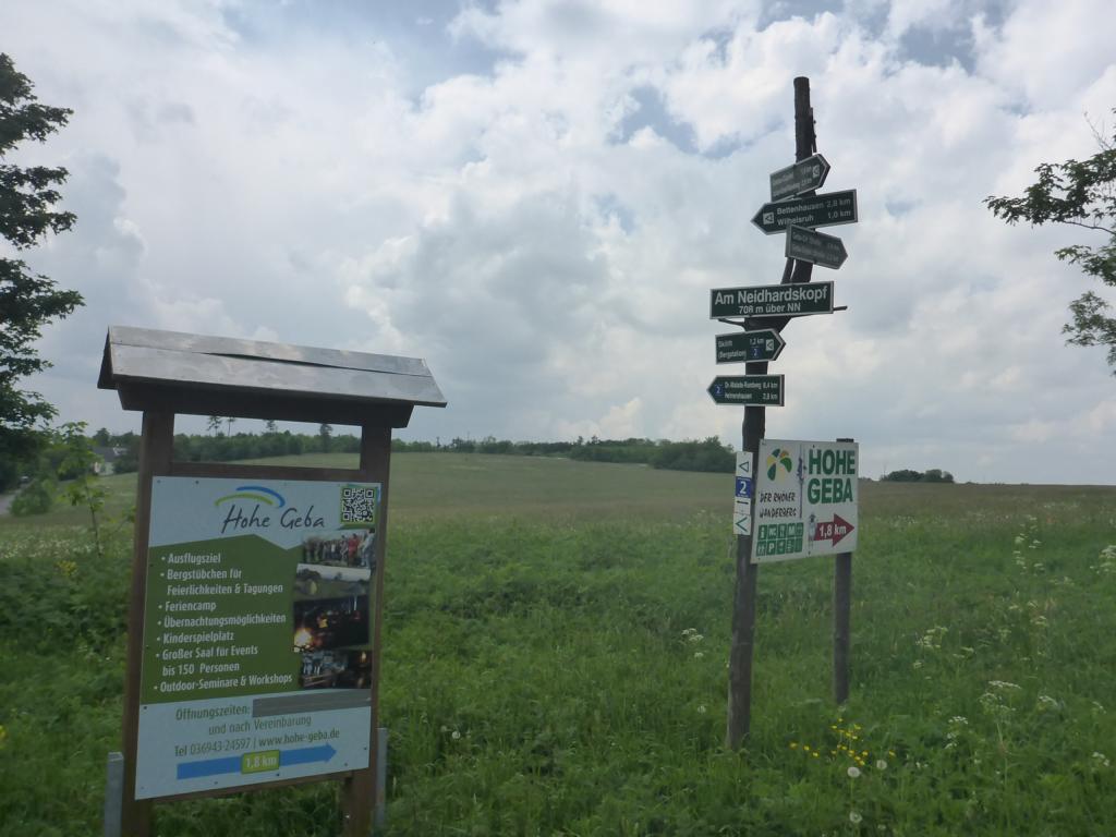 Vom Wanderparkplatz auf der hohen Geba führte mich der Weg zunächst Richtung Stepfershausen und durch den Wald zur Schafweide. Am Rhönfrieden vorbei und auf dem Dr. Maladeweg entlang ging es hoch zum Neidhardskopf und wieder zurück zur hohen Geba.
